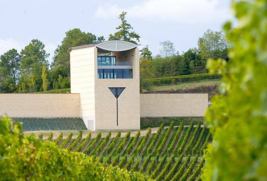En 2009, une transformation spectaculaire a lieu : le château devient une véritable cathédrale du vin. Conçu par l’architecte Mario Botta, le nouveau chai se dresse majestueusement au-dessus du vignoble, arborant une silhouette remarquable évoquant celle d’une cathédrale, d’où il tire son surnom.