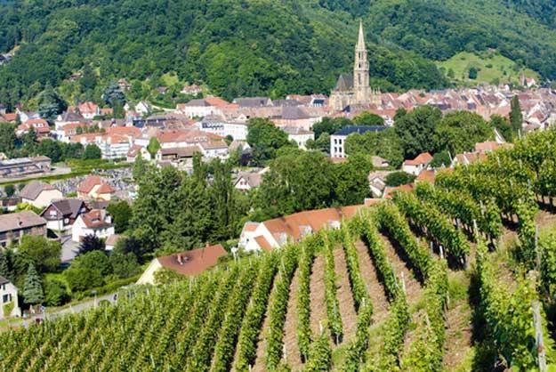 A 21 kilomètres de Mulhouse et 43 kilomètres de Colmar, Thann est une petite ville de 8 000 habitants, berceau du Rangen. Ce vin a fait la réputation de la ville dès le XIIème siècle. Il était (et est toujours !) si précieux, qu’à l’époque, les vignerons payaient des hommes pour surveiller les vignes, les bangards. S’ils ont disparu, leur cabane, elle, est restée à Thann. Depuis cette cabane, vous pouvez emprunter le sentier viticole qui traverse le Rangen. Ses 5 kilomètres sont parsemés de panneaux d’information sur la vigne, le vin et la vie des vignerons. La Croix de Rangen et l’Oeil de la Sorcière sont des points panoramiques depuis lesquels vous aurez une vue magnifique sur tout le vignoble de Thann.
